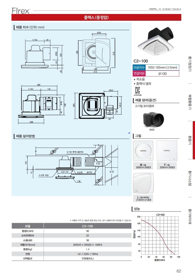 제품명 힘펠 플렉스 C2-100LF[중정압] 욕실환풍기 화장실환풍기(플러그타입)